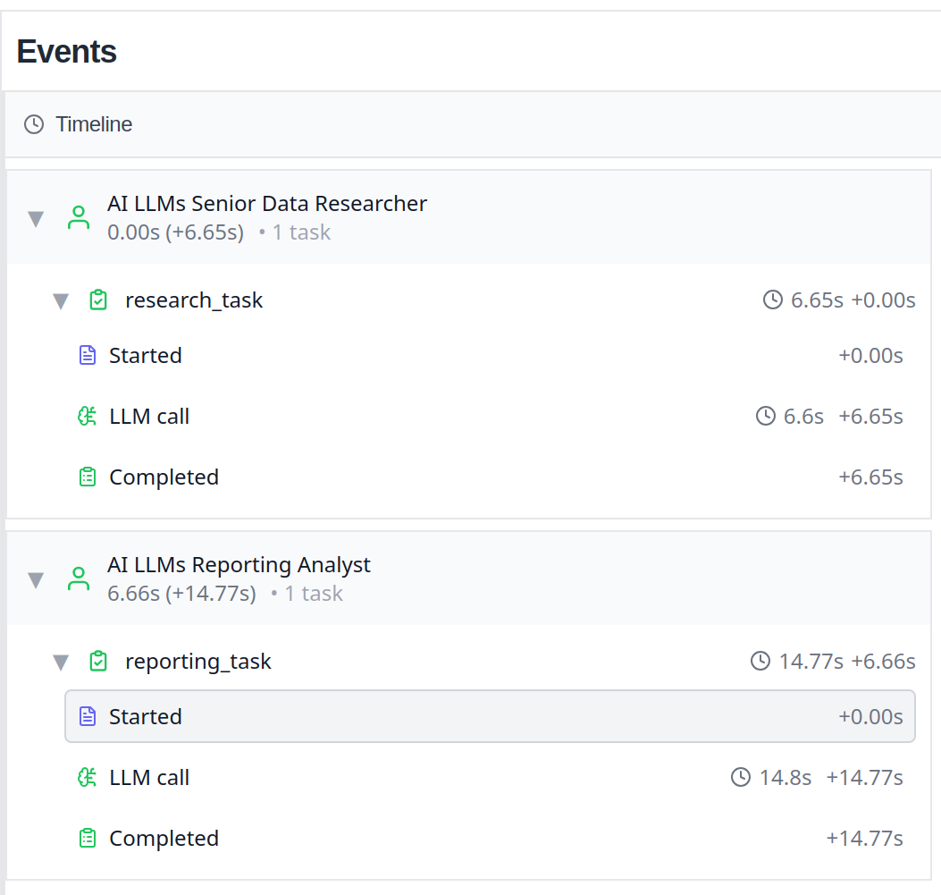 打开查看 tracing 信息,就两次 task,两次 LLM 调用: