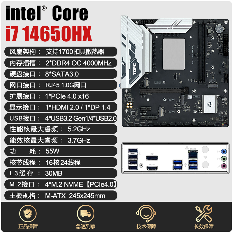 天邦MoDT魔改主板,搭载147000hx qs cpu,8大核12小核,matx版型ddr4内存