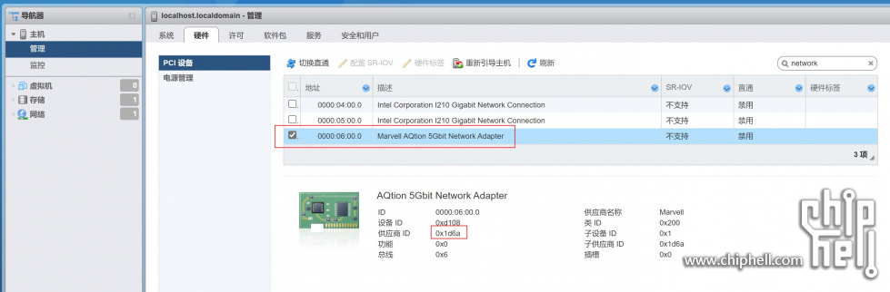 给 esxi 主机上加了一个新的 AQuantia aqn-108 5g(5千兆)有线网卡,这个机器的主板原来自带有两个 intel i210 千兆网卡。新加的准备 aqn-108 网卡是准备和另外一台机器做双机直连用。