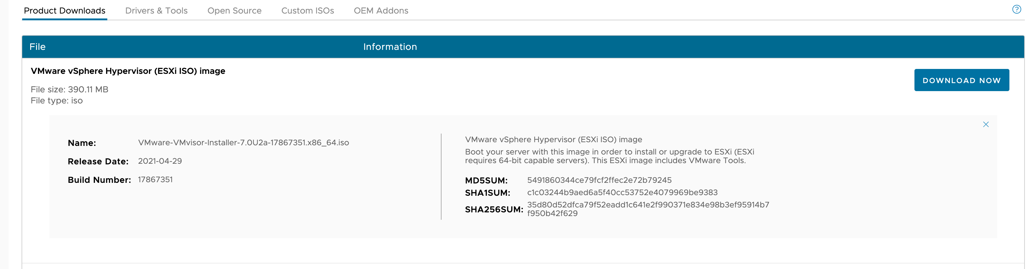从vmware官方下载页面下载 esxi 的最新版本 7.0.2: