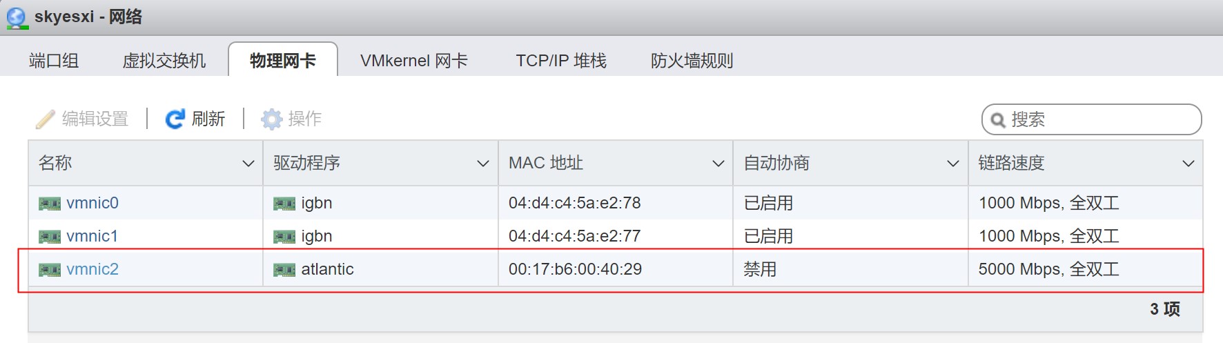 首先确保5G物理网卡已经识别,链路速度为5000Mbps,全双工。