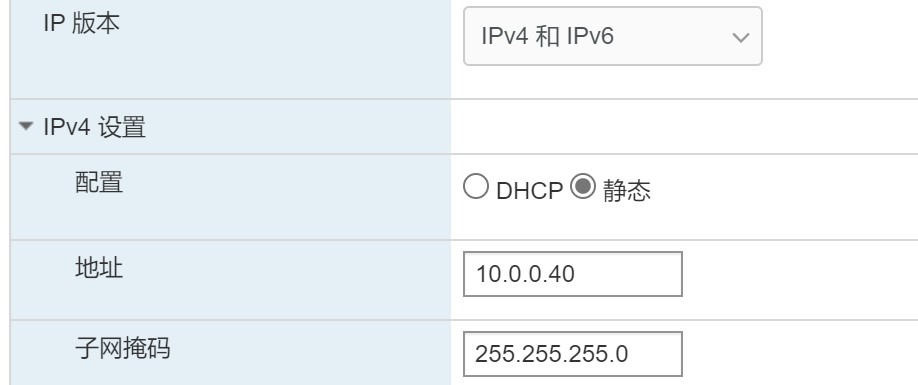 服务器端 esxi ip地址为 10.0.0.40:
