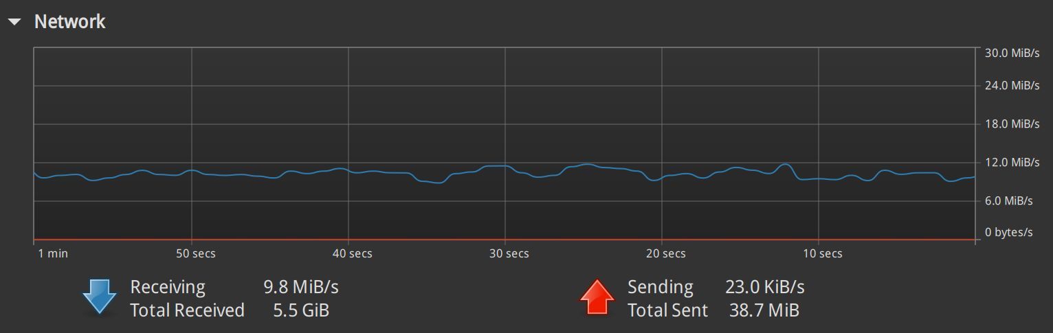 打开 linux mint 的系统监控器(system monitor),可以看到播放时的网络流量。100 GB 的 4k 蓝光圆盘,播放时大概是 12 MB 上下的下载速度,也就是 100 兆的宽带带宽大体就足以满足 4k 蓝光圆盘的 115 网盘不下载直接播放。
